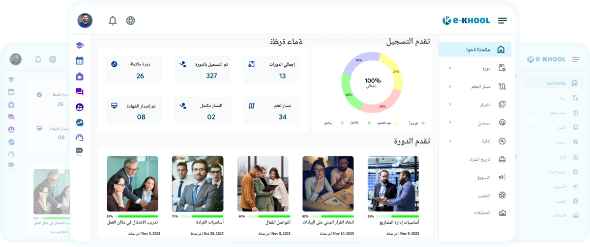 قم ببناء نظامك البيئي الخاص للتعليم الإلكتروني - قم بتأليف وتقديم وإدارة منصات التعلم بسلاسة مع e-KHOOL!