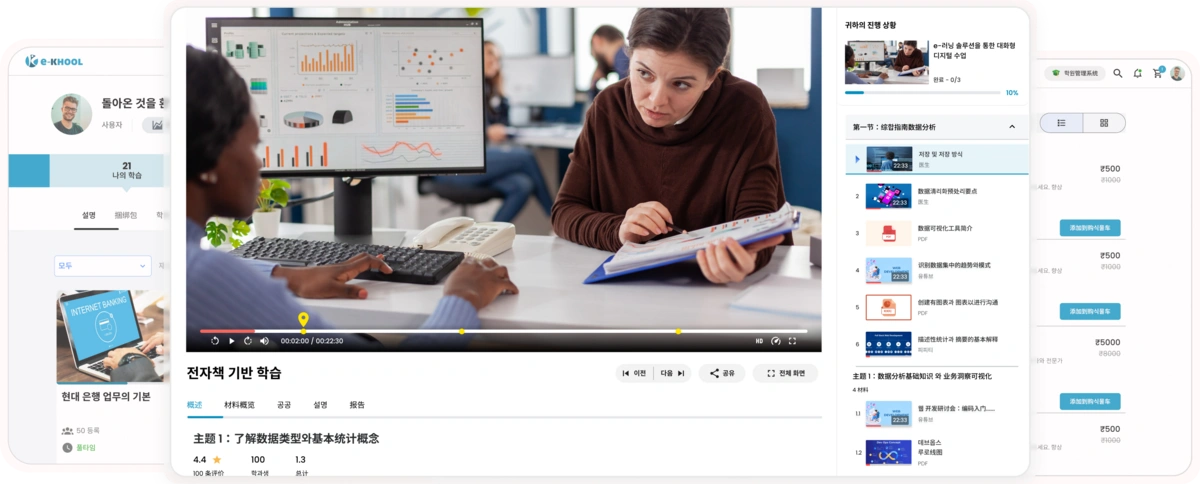 한국의 대학, 기업 교육 프로그램, 그리고 전문 교육 기관을 위해 설계된 e-KHOOL LMS는 체계적인 교육 운영과 통합 관리 체계를 제공하여, 일관되고 안정적인 학습 환경을 보장합니다.