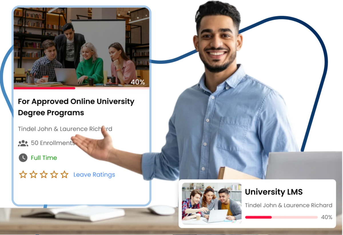 University LMS for higher education helps universities to deliver online courses to off-site students of Universities, Colleges. Also, students can learn flexibly with online degree courses.