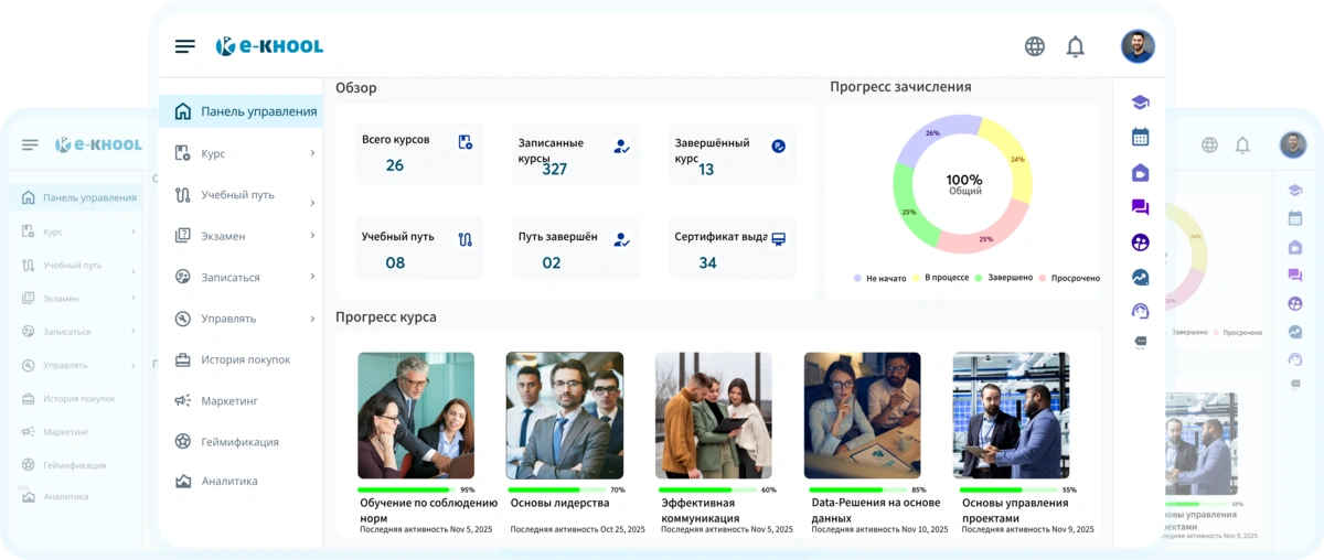 Создайте собственную экосистему электронного обучения — разрабатывайте, проводите и управляйте учебной платформой без усилий с e-KHOOL!